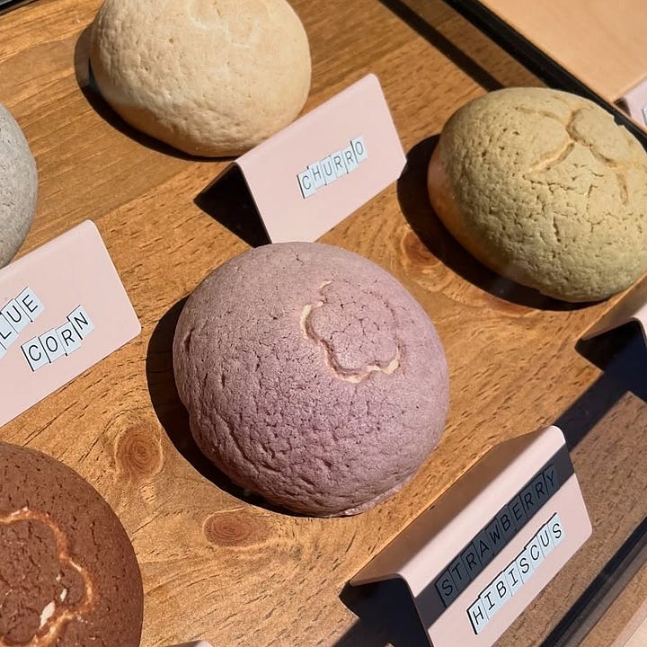 Pan dulce literally means “sweet bread” in Spanish, but it refers to the variety of Mexican sweet breads found in panaderías. Our favorites in SF are the conchas baked and served warm at Florecita, found in a narrow alley in the Mission. You’ll find all sorts of unusual flavors like Hibiscus, Blue Corn, and Champurrado, which recalls the traditional Mexican hot chocolate drink, thickened with masa harina (corn dough).